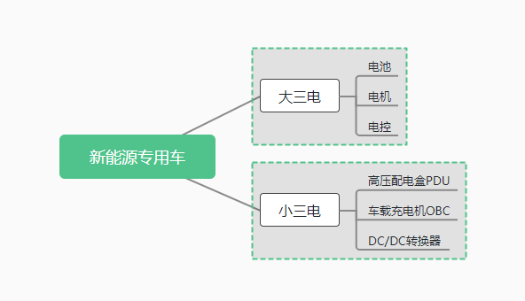 相較于傳統(tǒng)專用車以發(fā)動機、變速器等機械動力系統(tǒng)為核心,新能源專用車以由電池、電機、電控構(gòu)成的“大三電”系統(tǒng)為核心。小三電...