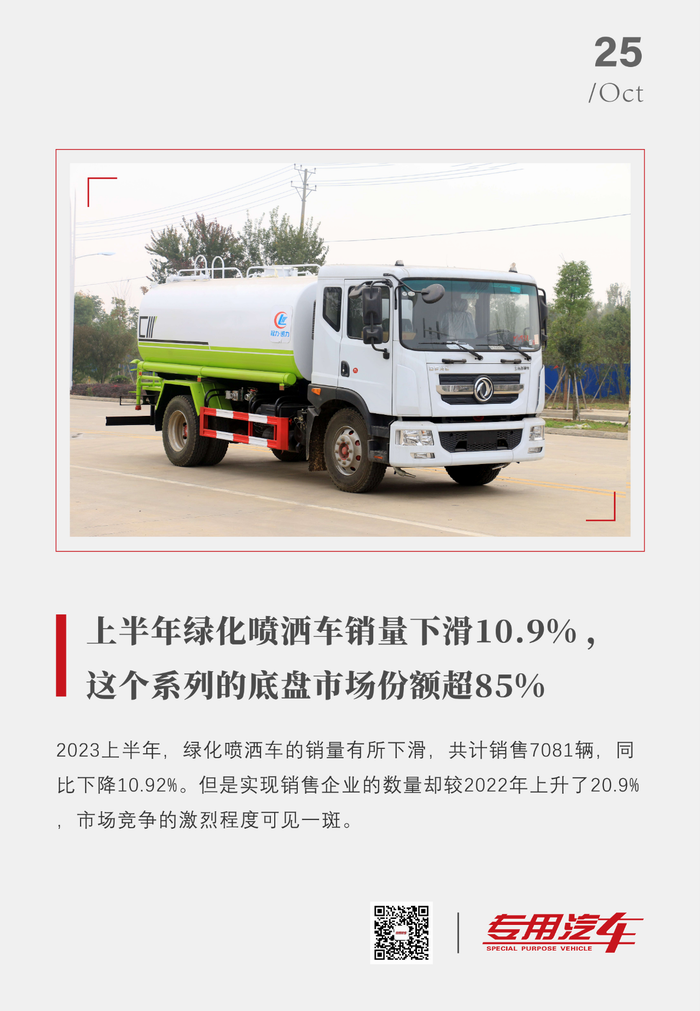 從整體市政環(huán)衛(wèi)車的銷量看,綠化噴灑車是其中銷量最大的品類,也是市政環(huán)衛(wèi)類市場(chǎng)的“兵家必爭(zhēng)之地”。 從上半年的數(shù)據(jù)看,綠化...
