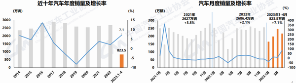 據(jù)中國汽車工業(yè)協(xié)會(huì)統(tǒng)計(jì)分析,2023年4月,因去年同期低基數(shù)效應(yīng)影響,汽車市場產(chǎn)銷實(shí)現(xiàn)同比快速增長。