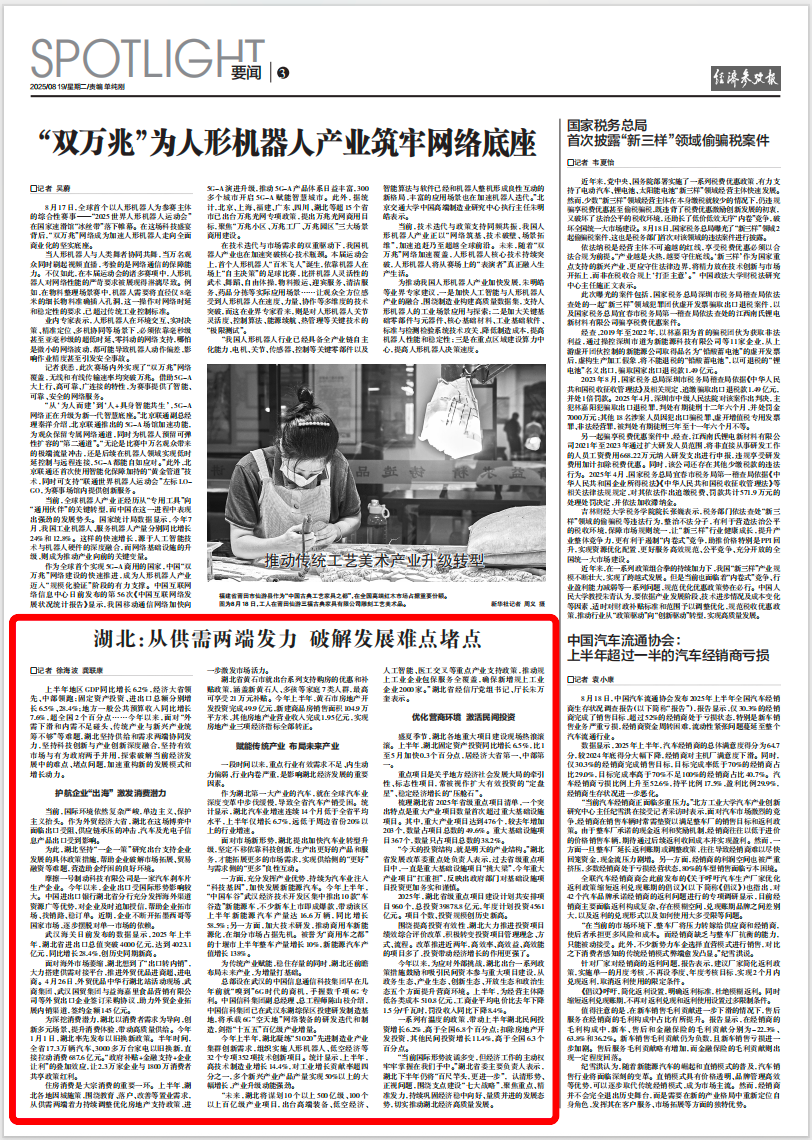 經(jīng)濟參考報丨湖北:從供需兩端發(fā)力 破解發(fā)展難點堵點