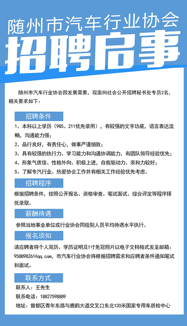 隨州市汽車行業(yè)協(xié)會(huì)招聘啟事