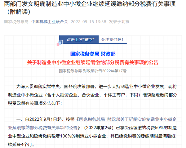 為深入貫徹落實(shí)黨中央、國(guó)務(wù)院決策部署,進(jìn)一步支持制造業(yè)中小微企業(yè)發(fā)展,現(xiàn)將制造業(yè)中小微企業(yè)(含個(gè)人獨(dú)資企業(yè)、合伙企業(yè)、個(gè)...