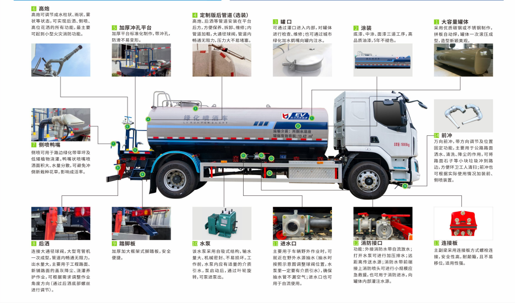 綠化噴灑車,又稱園林噴灑車或?yàn)⑺?,是一種專為城市綠化、園林養(yǎng)護(hù)、道路清潔等場景設(shè)計的專用車輛。其核心功能是通過車載水箱和噴灑系統(tǒng),實(shí)現(xiàn)對植物、路面、空氣等的噴水、灑水、降塵、降溫及農(nóng)藥噴灑等作業(yè),是城市市政環(huán)衛(wèi)、園林綠化部門的重要裝備。