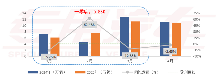 2025年4月,國內(nèi)專用汽車銷量10.91萬輛,同比下降2.65%。1-4月累計(jì)銷量35.95萬輛,同比微降0.23%,較2025年一季度下滑1.09個(gè)百分點(diǎn)。其中,普貨物流市場持續(xù)低迷,1-4月降幅較一季度擴(kuò)大1.58個(gè)百分點(diǎn),成為行業(yè)增長的主要拖累因素。
