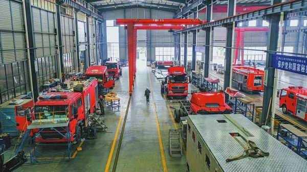 走進江南專汽,隨處可見橙紅色的各類消防車產(chǎn)品。車間內(nèi),工人們在各自崗位上專注作業(yè),生產(chǎn)、組裝、檢測;車間外,一臺臺壓縮泡沫消防車、舉高噴射消防車、高空作業(yè)車等整裝待發(fā)?!白蛱煳覀儼l(fā)走35臺,上周發(fā)走16臺?!苯蠈Fh支部書記、副總經(jīng)理江光連介紹。目前,該公司在手訂單近百臺,產(chǎn)值過億元。