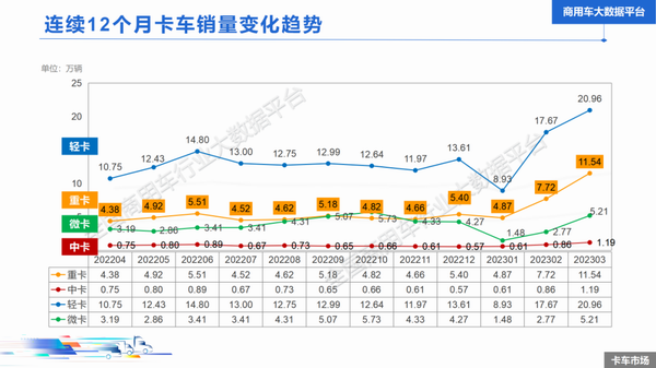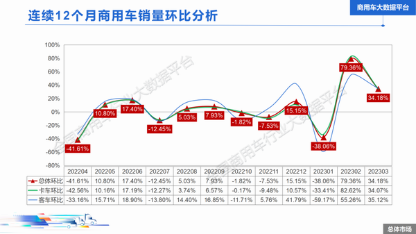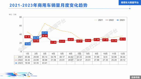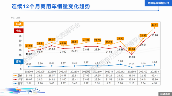 2023年3月全國商用車整體銷量(批發(fā))為43.41萬輛,同比上升17.46%,環(huán)比上升34.18%。