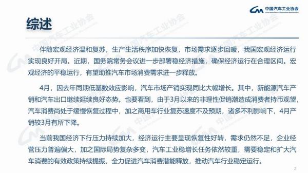 當前我國經(jīng)濟下行壓力持續(xù)加大,經(jīng)濟運行主要呈現(xiàn)恢復性好轉(zhuǎn),需求仍然不足,企業(yè)經(jīng)營壓力普遍偏大,加之國際局勢復雜多變,汽車工業(yè)穩(wěn)增長任務依然較重,需要穩(wěn)定和擴大汽車消費的有效政策持續(xù)提振,全力促進汽車消費潛能釋放,推動汽車行業(yè)穩(wěn)定運行。