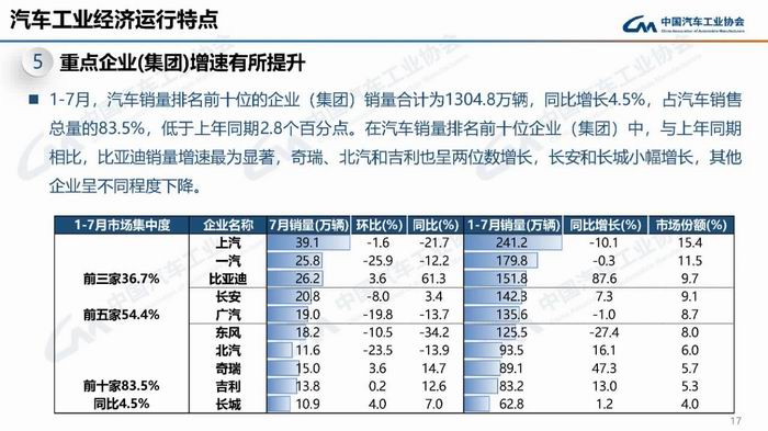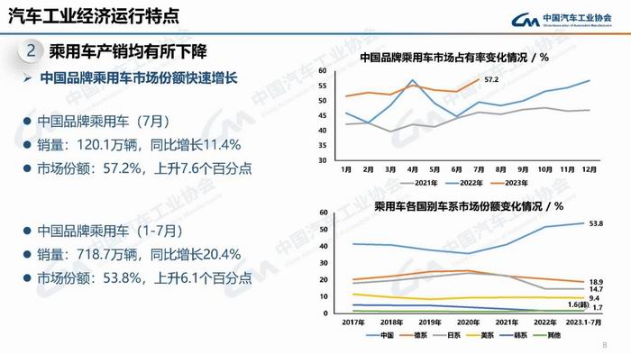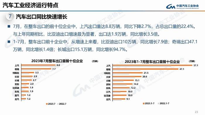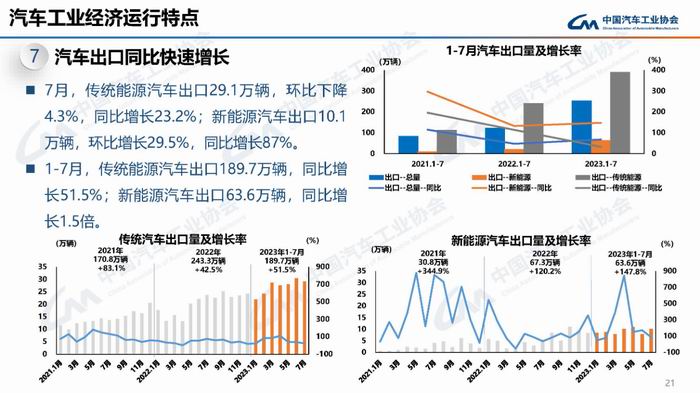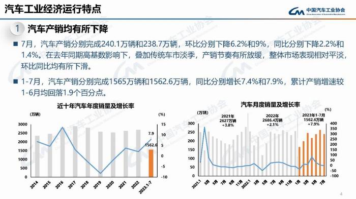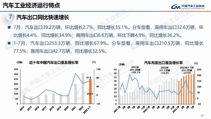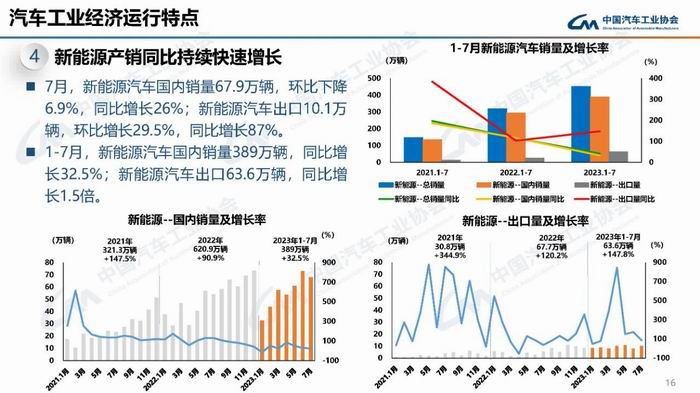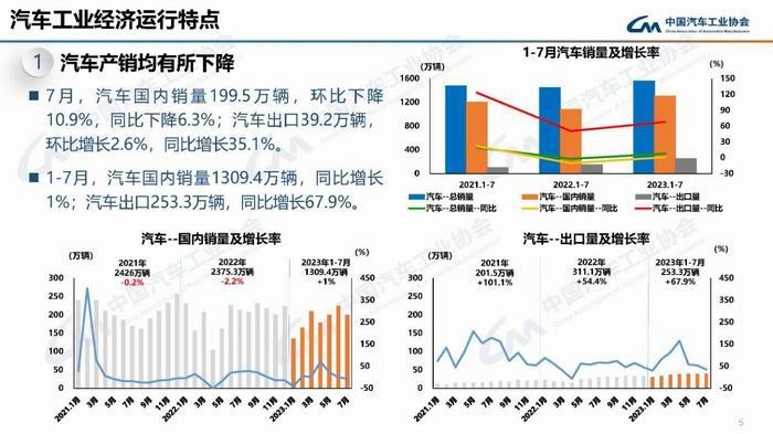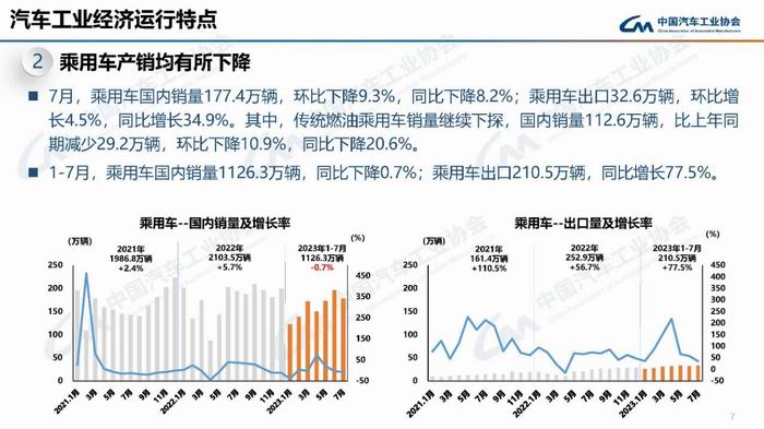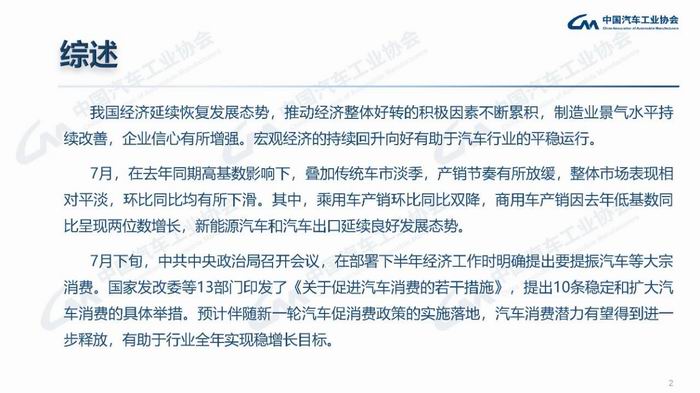 7月,在去年同期高基數(shù)影響下,疊加傳統(tǒng)車市淡季,產(chǎn)銷節(jié)奏有所放緩,整體市場表現(xiàn)相對平淡,環(huán)比同比均有所下滑。其中,乘用車產(chǎn)銷環(huán)比同比雙降,商用車產(chǎn)銷因去年低基數(shù)同比呈現(xiàn)兩位數(shù)增長,新能源汽車和汽車出口延續(xù)良好發(fā)展態(tài)勢。