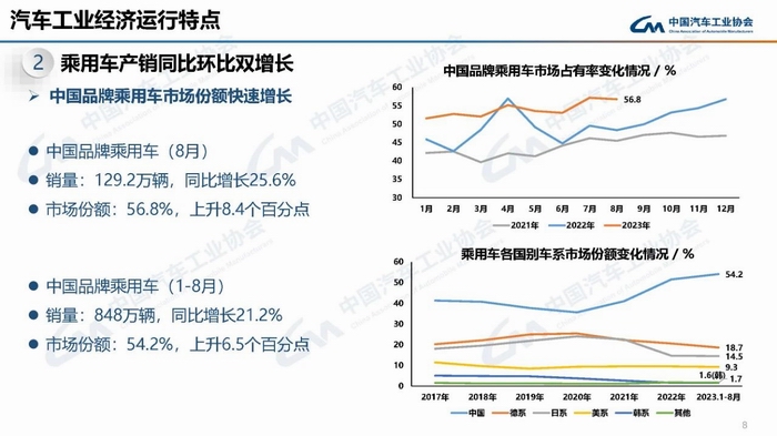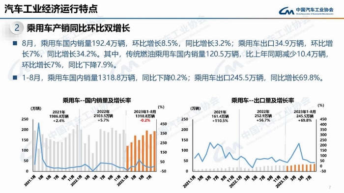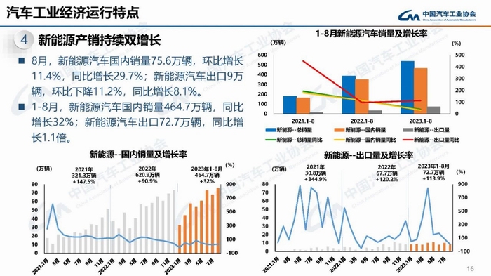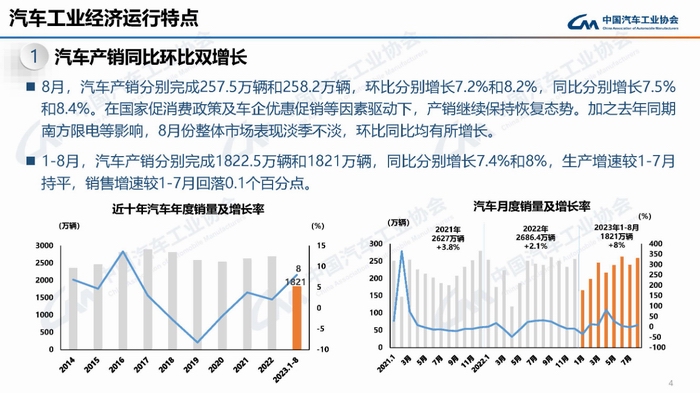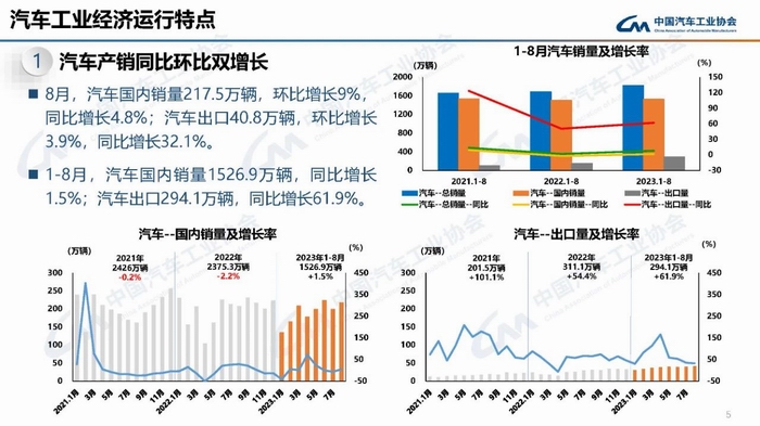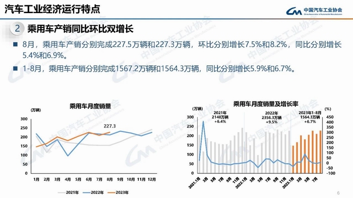 2023年8月,在國家促消費政策及車企優(yōu)惠促銷等因素驅(qū)動下,購車需求持續(xù)釋放,汽車市場整體呈現(xiàn)淡季不淡的特點,環(huán)比同比均實現(xiàn)增長。