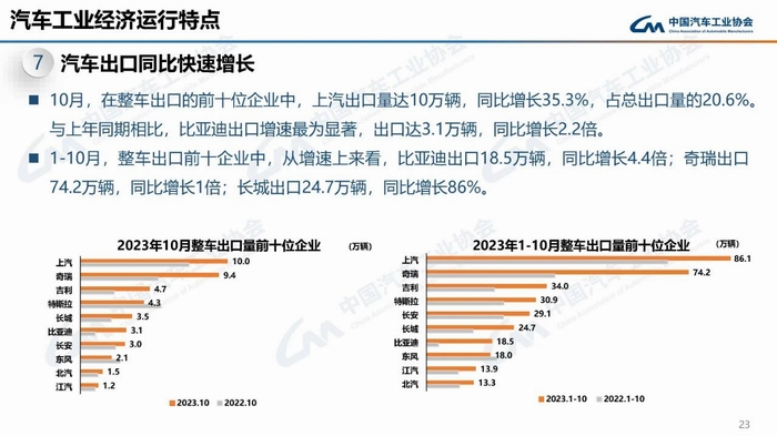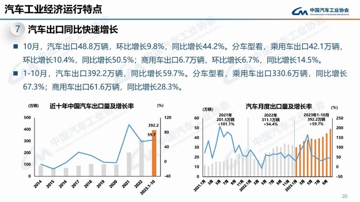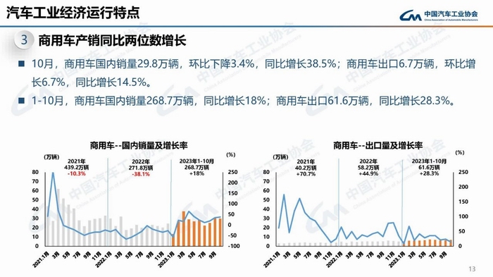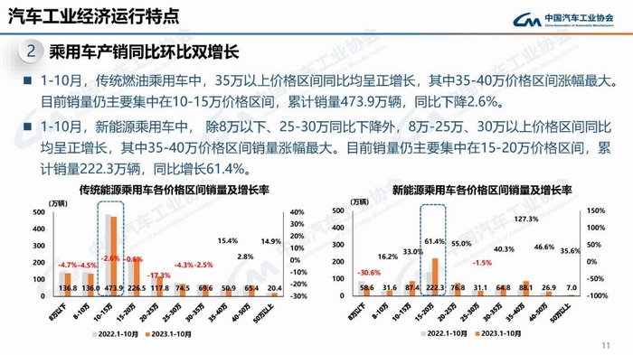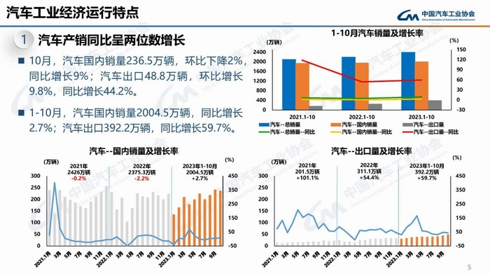 據(jù)中國(guó)汽車工業(yè)協(xié)會(huì)統(tǒng)計(jì)分析,2023年10月,進(jìn)入金秋十月,多地車展與促銷活動(dòng)火熱進(jìn)行,各大車企新車型持續(xù)發(fā)布,進(jìn)店客流顯著增加,進(jìn)一步拉動(dòng)汽車消費(fèi)。繼重迎“金九”旺季之后,10月車市熱度繼續(xù),汽車銷量與9月基本持平,環(huán)比略降,同比較快增長(zhǎng),“銀十”成色十足。