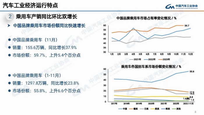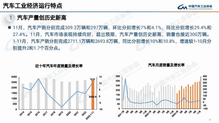 據(jù)中國(guó)汽車工業(yè)協(xié)會(huì)統(tǒng)計(jì)分析,2023年11月,汽車市場(chǎng)熱度延續(xù),借助“雙11”大促等消費(fèi)浪潮,購(gòu)車需求進(jìn)一步釋放,市場(chǎng)表現(xiàn)持續(xù)向好、超出預(yù)期。