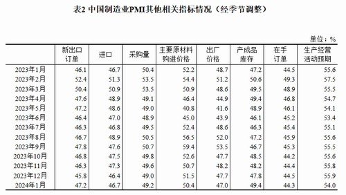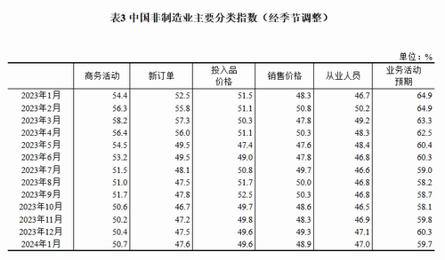 2024年1月中國采購經(jīng)理指數(shù)運行情況