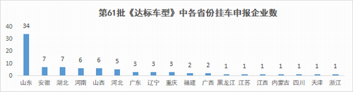 從第61批《達標車型》可以看到,達標掛車產(chǎn)品生產(chǎn)區(qū)域集中度較高。本批次掛車營運達標車型產(chǎn)自國內(nèi)18個省份的40座城市,主要集中在山東、河南、湖北、安徽等省份,這四省達標掛車車型數(shù)均超過10個,共109個,占比68.55%。
