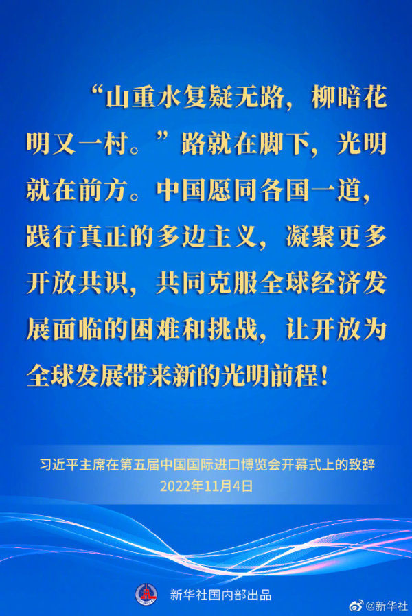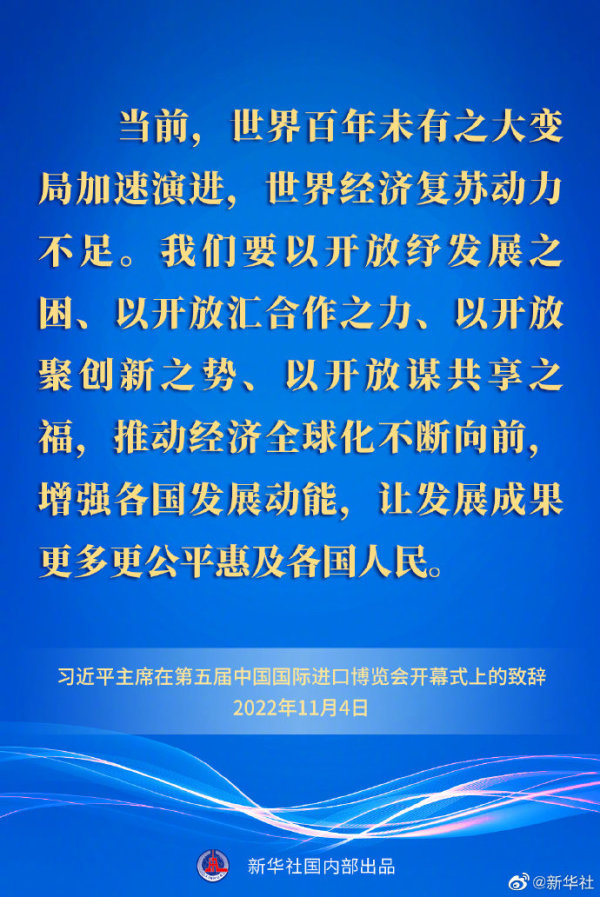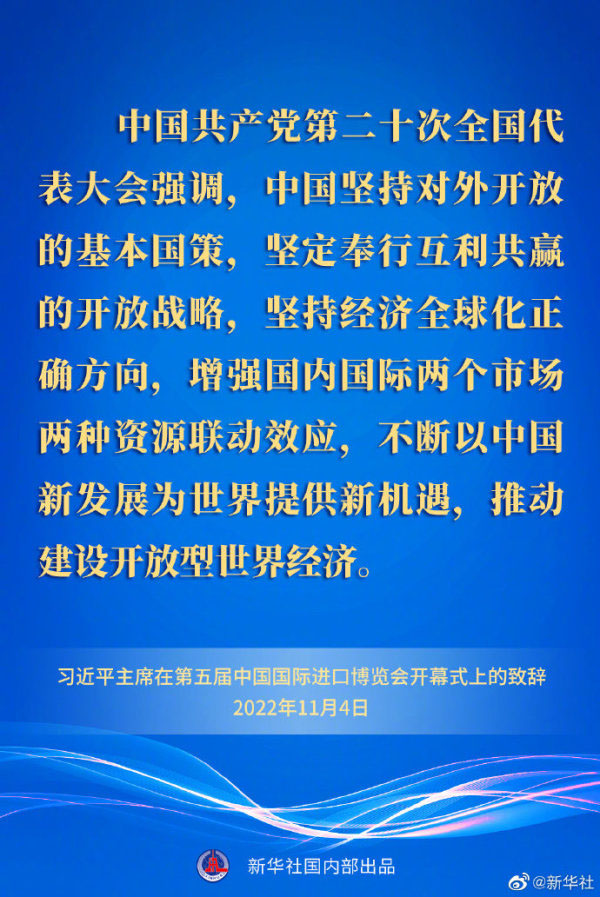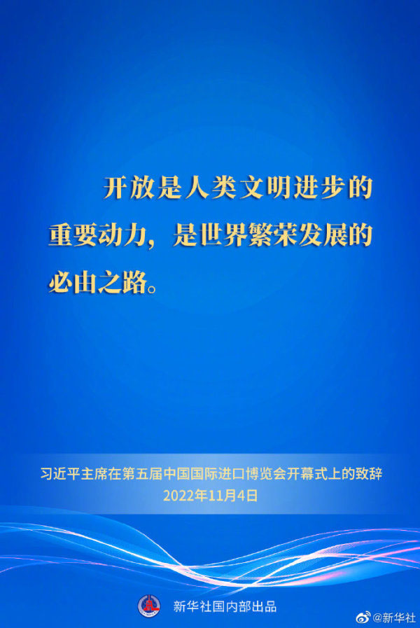 11月4日晚,國家主席習(xí)近平以視頻方式出席在上海舉行的第五屆中國國際進(jìn)口博覽會開幕式并發(fā)表題為《共創(chuàng)開放繁榮的美好未來》的致辭。一起來看要點。