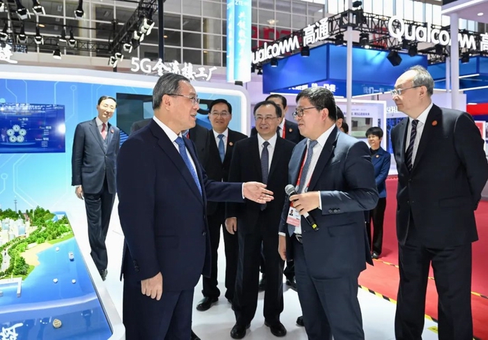 11月28日,國(guó)務(wù)院總理李強(qiáng)在北京出席首屆中國(guó)國(guó)際供應(yīng)鏈促進(jìn)博覽會(huì)開(kāi)幕式暨全球供應(yīng)鏈創(chuàng)新發(fā)展論壇,并發(fā)表主旨演講。這是開(kāi)幕式前,李強(qiáng)到鏈博會(huì)展館巡館并與有關(guān)企業(yè)負(fù)責(zé)人互動(dòng)交流。新華社記者 饒愛(ài)民 攝